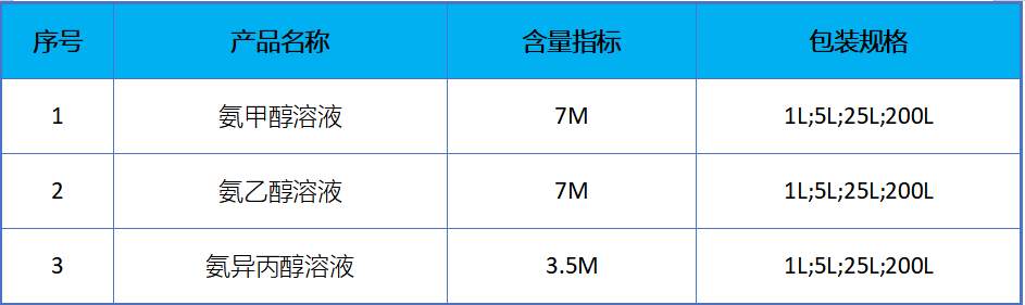 ☆ 密度:7M氨甲醇溶液0.83~0.86g/cm³,7M氨乙醇溶液0.86~0.89g/cm³,3.5M氨异丙醇溶液0.84~0.86g/cm³。